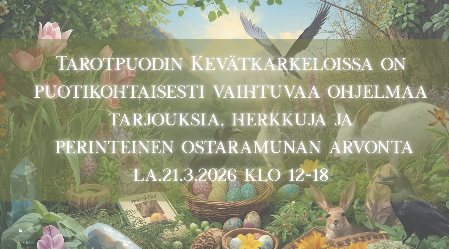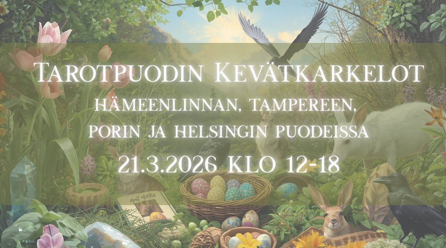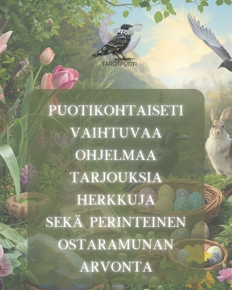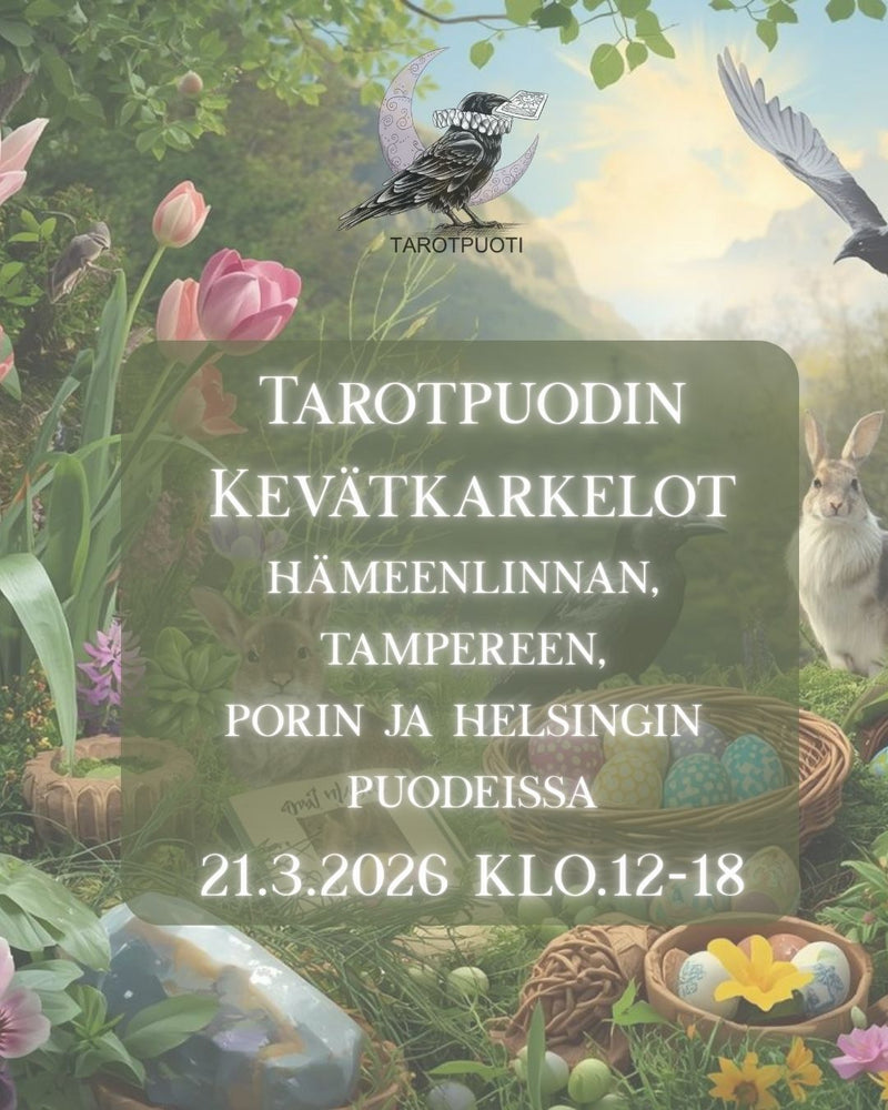 Tervetuloa Tarotpuodin ihmeelliseen maailmaan! Olemme tarotiin ja magiaan erikoistunut verkkokauppa ja kivijalkamyymälä Hämeenlinnassa. Meillä on Pohjoismaiden, ehkä jopa Euroopan, suurin ja monipuolisin korttipakkavalikoima. Rakastamme kortteja ja kaikkea siihen liittyvää, ja olemme jo vuosia keräilleet erilaisia korttipakkoja ympäri maailman ja tutustuneet aiheeseen monelta eri kantilta. Tarotpuotiin olemme keränneet laajan valikoiman erityyppisiä pakkoja, jotta löytyisi juuri sinulle sopiva vaihtoehto. Tarotin lisäksi löytyy laaja valikoima oraakkelikortteja, kristalleja, suitsukkeita, magiatuotteita, kirjallisuutta ja äänimaljoja. Lippulaivamme Hämeenlinnassa sijaitsee yli 100-vuotiaassa vanhassa seurojentalon juhlasalissa. Olemme luoneet teille maagisen maailman, minne olet tervetullut juuri sellaisena kuin olet. Pop-up kahvilassamme voit nauttia kupposen kahvia, teetä tai Universumin parasta kaakaota samalla kun tutkit sinua kiinnostavia tuotteita. Tampereella sijaitsemme ihanassa keltaisessa "Aurinkotaloksikin" kutsustussa Lidmanintalossa junaradan ja Tammelan torin välissä. Lisäksi Porin puotimme sijaitsee Kauppakeskus Puuvillan vieressä Isosannan puistokadulla. Helsingissä palvelemme Kasarmikatu 2:ssa entisissä Era Novan tiloissa. Meille saa tulla nauttimaan ja latautumaan hyvästä energiasta. Järjestämme myös erilaisia tapahtumia ja koulutuksia. Olemme paikka, mihin samanhenkiset sielut voivat kokoontua ja keskustella vapaasti ja kokea yhteenkuuluvuutta ilman syrjintää tai ennakkoluuloja.