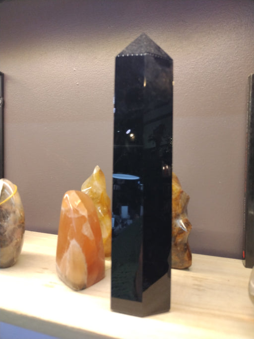 Tarotpuoti ImportMusta obsidiaani torni 500–1300 g Musta obsidiaani on voimakas suojaava ja maadoittava kivi, joka auttaa poistamaan negatiivisia energioita ja tuke...