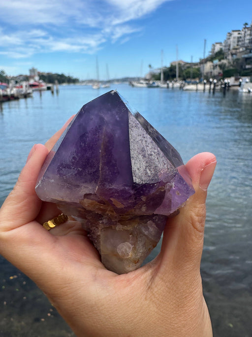 Tarotpuoti CrystalsTämä näyttävä, luonnollinen ametistikärki on peräisin Brasiliasta ja esittelee ametistin syvän violetit sävyt ja luonnon muovaaman rakenteen parhai...