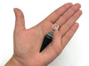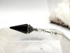 Musta obsidiaani heiluri, kaksipäinen, hopeoidulla ketjulla