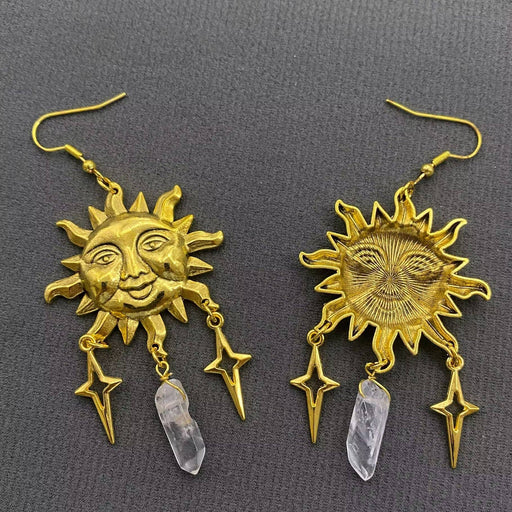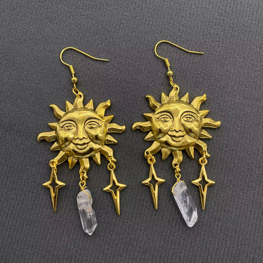 Tarotpuoti JewelleryNämä näyttävät riipuskorvakorut yhdistävät sädehtivän aurinkoriipuksen ja kristallin kultapinnoitettuun metallipohjaan. Korujen koko ja yksityisk...