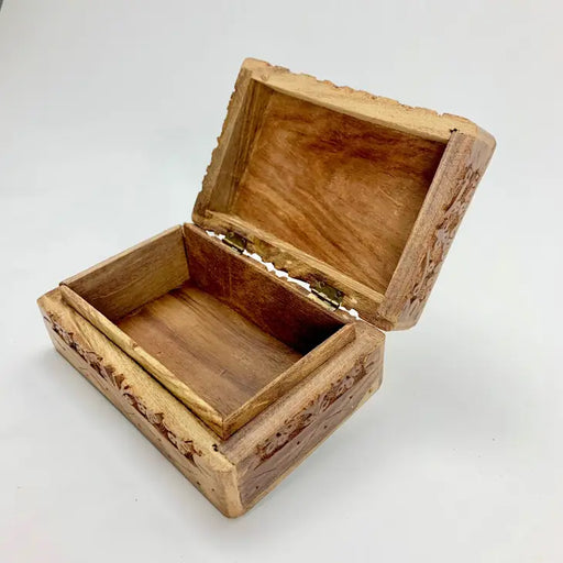 A beautiful wooden box for tarot cards, crystals, and your other little treasures. no decorations, simple as... box with no markings ;)