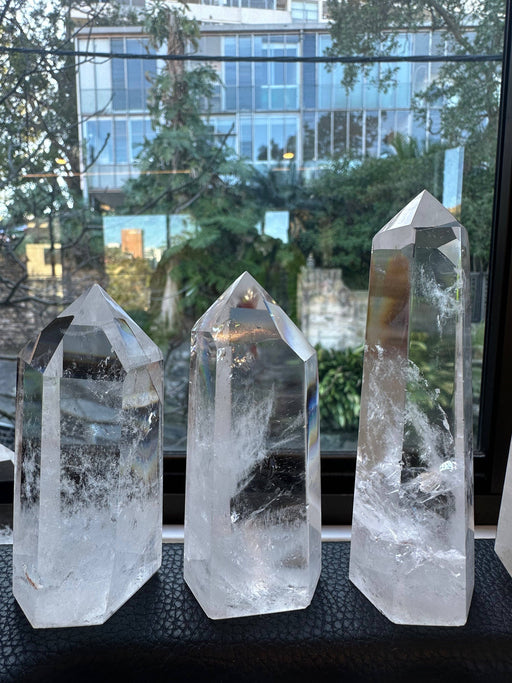 2. Towers – Tower-shaped crystals are powerful protectors and energy balancers. They help maintain harmony and can clear a space of negative energies. Towers are great tools for chakra work and can be used to focus energy on specific areas of the body.