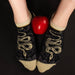 Näissä matalavartisissa sukissa liu’utaan tyyliin kuin snek konsanaan. Siro ja napakka malli yhdistettynä yksityiskohtaiseen kuviointiin tekee näistä sukista täydellisen valinnan, kun halutaan kevyttä mukavuutta ja vähän asennetta. Sopivat erinomaisesti arkeen, lenkille tai vain silloin, kun tekee mieli olla vähän liukasliikkeinen.