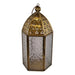 This gorgeous gold and glass lantern adds more than candlelight to your home, intricate cut out metal work brings beautiful patterns when lit and will add the Mystery of Morocco to a room or outdoor space. The product can be hung or placed on a tabletop.