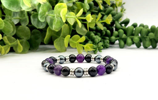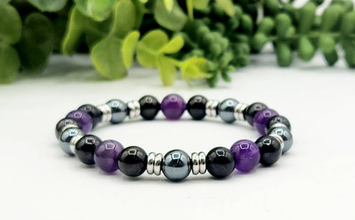 Suojaava rannekoru – šungiitti, ametisti ja hematiitti, 20 cm Tämä vaikuttava kolmesta kivestä koostuva rannekoru on valmistettu luonnollisista 8 m...