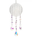 Hopeansävyinen aurinkosieppari, jossa elämän kukan symboli ja koristeena pieniä ametistikiviä. Alaosassa riippuva hiottu kristalliriipus taittaa auringonvaloa kauniisti ja luo säihkyviä heijastuksia ympäröivään tilaan.