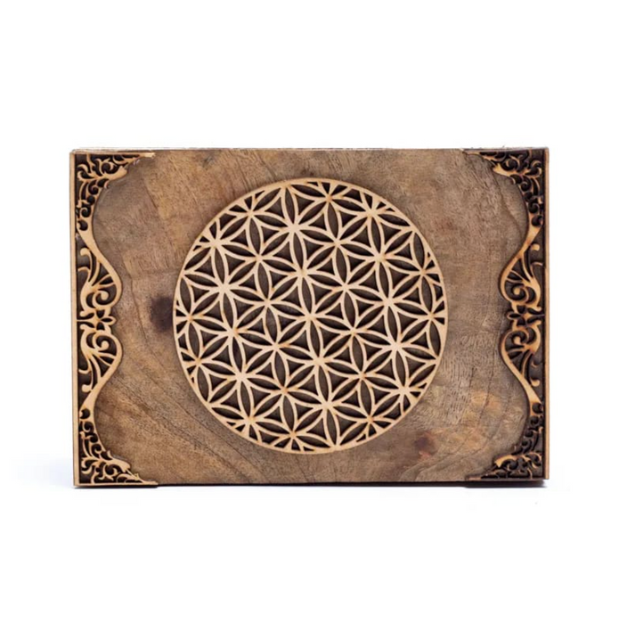 Tarot-laatikko – laserleikattu elämänkukka -symboli