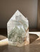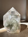 Tämä harvinainen lodoliitti-torni on luonnon ja kristallien maailmaa yhdistävä ainutlaatuinen kide, joka tuo tilaan rauhoittavaa ja maanläheistä energiaa. Kristallin sisällä näkyy vihreitä phantom-kerroksia ja monivivahteisia maisemamaisia sulkeumia, jotka muistuttavat pieniä puutarhoja tai näkymiä toisesta maailmasta.