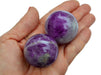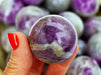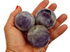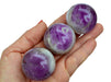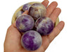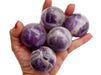 Tyyppi: Ametisti Väri: Violetti valkoisilla suonilla Läpinäkyvyys: Läpikuultava Mohsin kovuus: 7 Kiillotus: Kiillotettu kaikilta sivuilta Muoto: Pallo Noin mitat: 25mm/-60mm1" - 1,5" Noin paino: 30g -100g Alkuperä: Madagaskar