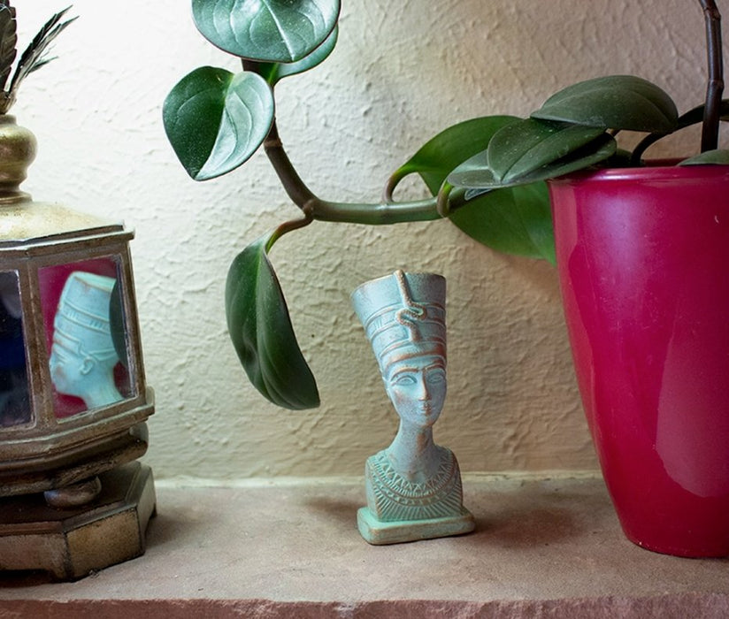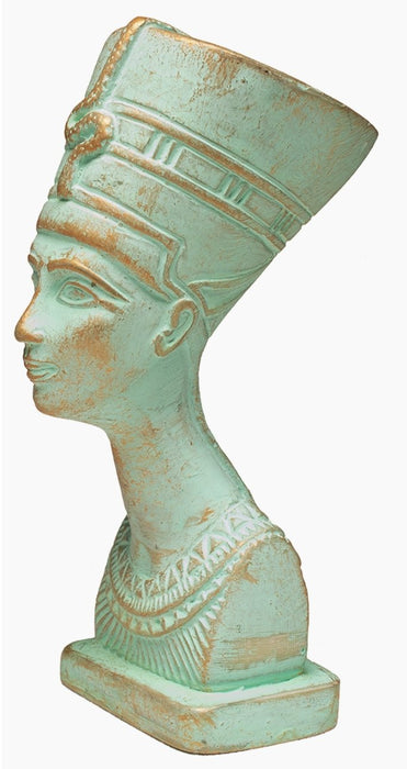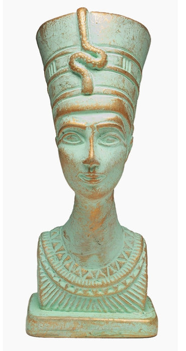 Nefertiti, jonka nimi tarkoittaa "Kaunis on tullut", on monien uskomusten mukaan faarao Tutankhamonin äiti. Tämä polymeeristä valmistettu patsas on viimeistelty antiikkipatinoidulla pinnalla. Patsas toimitetaan koristeellisessa hieroglyfein koristellussa laatikossa, mukana tietokortti.
