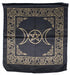 Tämä kaunis musta alttariliina on koristeltu kultaisella Triple Moon -kuviolla, jonka keskellä on pentagrammi. Triple Moon symboloi kuun vaiheita ja jumalattaren kolmea aspektia – neitoa, äitiä ja vanhaa naista – kun taas pentagrammi edustaa viiden elementin tasapainoa ja suojelun voimaa.
