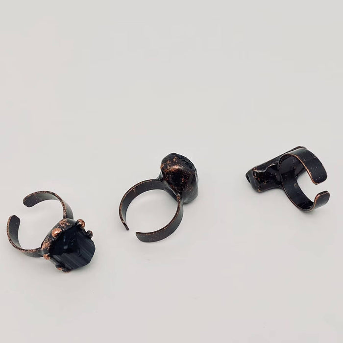 Säädettävä raakamuotoinen musta turmaliini -sormus