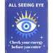 Hauska ja värikäs All Seeing Eye -kyltti auttaa pitämään ei-toivotut energiat loitolla. Kyltissä on moderni silmäkuvio sekä teksti "Check your energy before you enter", joka sopii täydellisesti persoonalliseen ja hieman mystiseen kotiin.