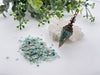 Kauniisti valmistettu heiluri, jossa luonnollisia amazoniittisiruja, kuparilankaa ja kirkasta hartsia. Varustettu kuparinvärisellä ketjulla ja papukaijalukolla. Soveltuu hyvin kyllä/ei-työskentelyyn, energiatyöhön tai käytettäväksi henkisenä koruna.