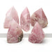 Puolikiillotettuja ruusukvartsi-kärkiä, jotka ovat peräisin Intiasta. Jokainen kivi on käsin muotoiltu, ja niissä yhdistyy kiillotettu kärki ja pohja sekä luonnolliset, käsittelemättömät sivut. Kivien kuusi epäsäännöllistä fasettia korostavat luonnollista ilmettä ja aitoutta.