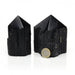 Erä puoliraakoja mustia turmaliineja, jotka on käsityönä muotoiltu kärjiksi siten, että sivut on jätetty luonnollisiksi. Jokainen kappale on ainutlaatuinen, eikä kahta täysin samanlaista ole.