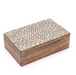 Kompakti ja käsintehty korurasia on valmistettu kestävästä mangopuusta. Kannen pinnassa on yksityiskohtainen valkoinen Flower of Life -kaiverrus. Soveltuu erinomaisesti korujen, kristallien tai muiden pienten pyhien esineiden säilytykseen.